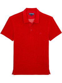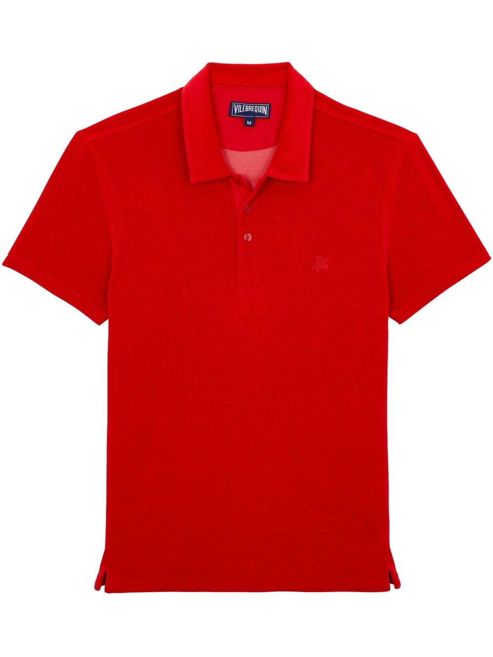 terry-cloth polo shirt Highlights - Red - Front button placket - Polo collar - Short sleeves - Straight hem Imported Composition Organic Cotton 86%, Polyamide 14% Washing instructions Read Manufacturer Guidelines