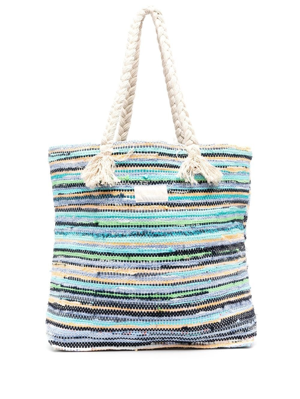 woven rope-detail tote Vilebrequin's tote is woven with multicolour threads that give it a vibrant aesthetic. Designed with two rope-detail top handles complete with frayed trims for a rustic feel, it's topped with a logo patch at the centre. Highlights - Handcrafted creation: each piece is unique - Non contractual photo - Beach bag handmade from scrap fabrics, each bag is unique - Knitting with a single thread, ancestral know-how - Two cotton handles - Label vilebrequin ecru on the front of the bag - Sizes: 62 cm x 40 cm x 20cm - 100% textile Imported Composition Outer: Fabric 100% SIZE & FIT Model measurements Height 6 ft 2 in(1.87 m) Bust/Chest 35.82 in(91 cm) Hips 35.43 in(90 cm) Waist 27.95 in(71 cm) Measurement DEPTH 4.33 in(11 cm) HANDLE 11.41 in(29 cm) HEIGHT 15.74 in(40 cm) WIDTH 19.29 in(49 cm)