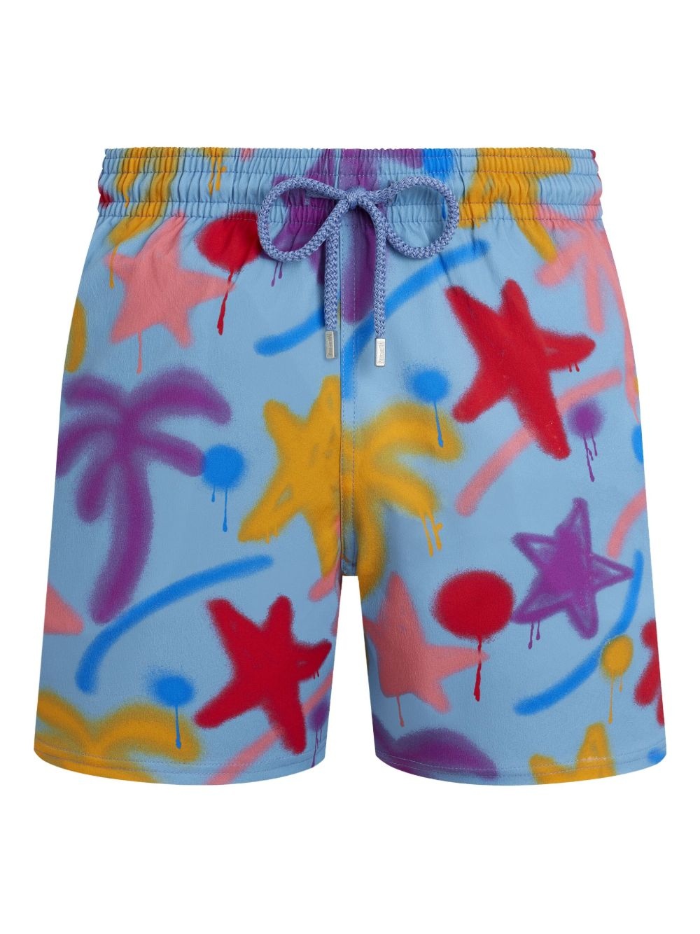 x Palm Angels Spray Paint swim shorts Highlights - Sky blue - Drawstring fastening - Elasticated waistband - Rear flap pocket - Be mindful to try on swimwear over your own garments. Imported Composition Recycled Polyamide 98%, Elastane 2%