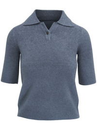 boucle polo shirt Highlights - Cornflower blue - Cashmere - Boucle construction - Melange effect - Polo collar - Front button placket - Short sleeves - Straight hem Imported Composition Cashmere 100%