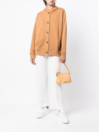 button-up cotton hoodie honey brown cotton jersey knit classic hood front button fastening long sleeves ribbed cuffs ribbed hem Imported Composition Cotton 100% SIZE & FIT Model measurements Height 5 ft 10 in(1.77 m) Bust/Chest 31.49 in(80 cm) Hips 35.43 in(90 cm) Waist 25.19 in(64 cm) FittingInformation This piece fits true to size. We recommend you get your regular size Cut for an oversized fit Made with a mid-weight fabric Washing instructions Machine Wash