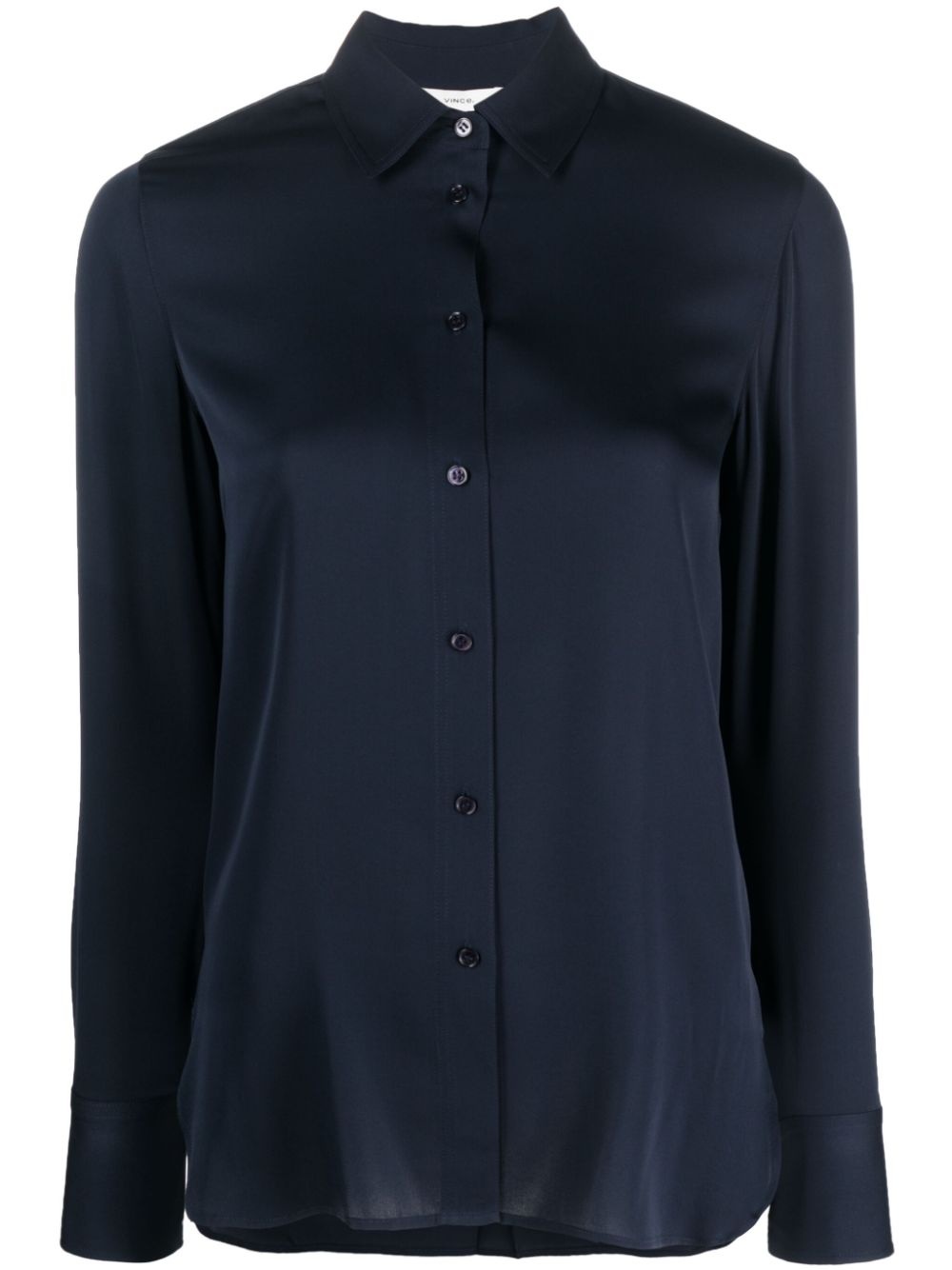 classic collar shirt Navy silk classic collar shirt from Vince featuring a front button fastening, a classic collar, long sleeves, button cuffs, a relaxed shape and a straight hem. Imported Composition Silk 92%, Spandex/Elastane 8% SIZE & FIT Model measurements Height 5 ft 9 in(1.75 m) Bust/Chest 33.07 in(84 cm) Hips 35.03 in(89 cm) Waist 24.01 in(61 cm) Measurement CHEST 42.51 in(108 cm) LENGTH 25.98 in(66 cm) WAIST 40.94 in(104 cm) SLEEVE LENGTH 20.47 in(52 cm) HIPS 43.3 in(110 cm) FittingInformation Designed to be unstructured, offering a loose fit throughout Constructed with narrow shoulders Made from a lightweight stretch fabric, this piece offers elasticity and flexibility when worn This piece fits true to size – those with broad shoulders may wish to take one size up Washing instructions Hand Wash