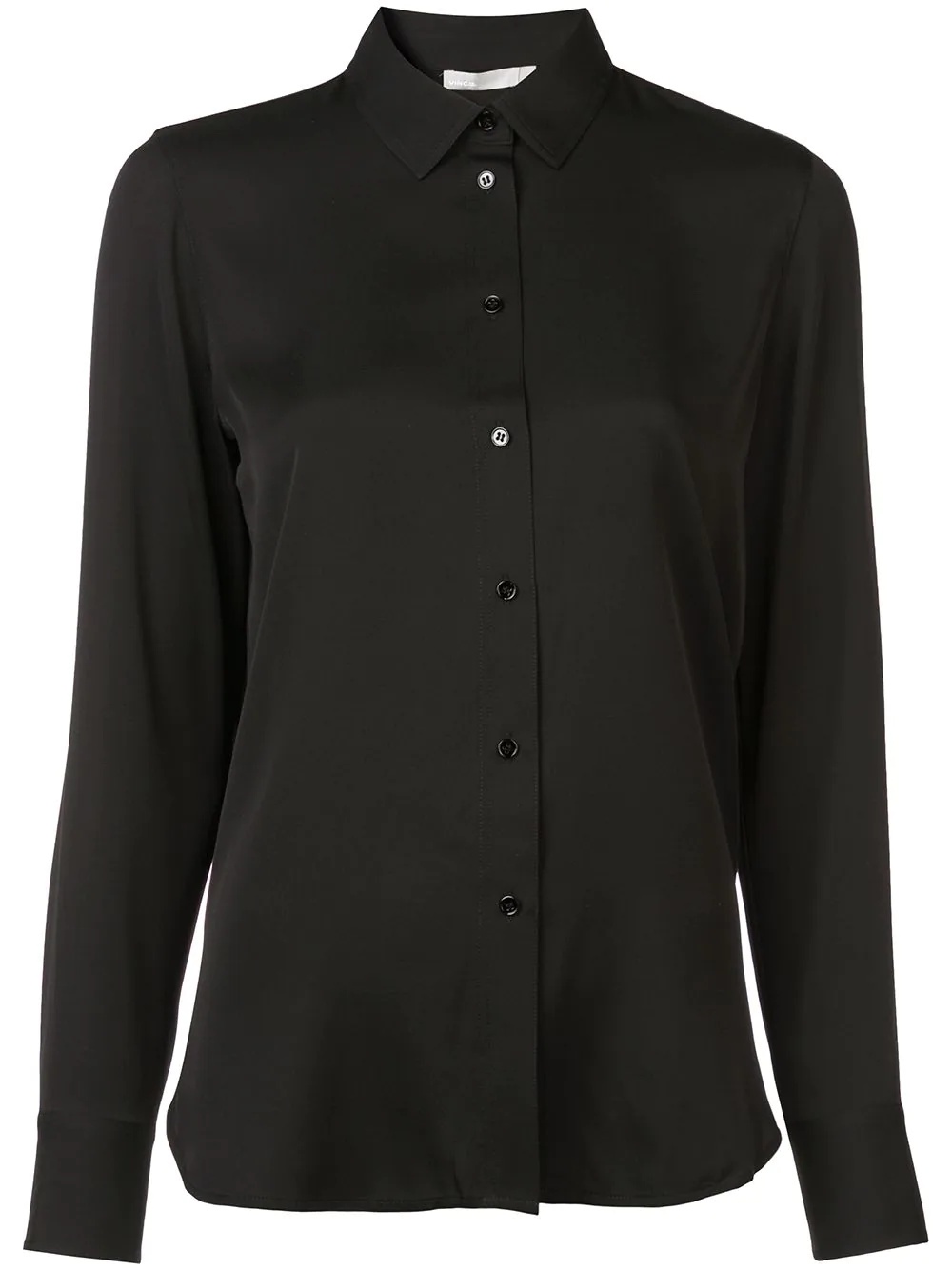 classic silk shirt Black classic silk shirt from Vince featuring a collar, a front button fastening, long sleeves and button cuffs. Imported Composition Silk 100% SIZE & FIT Model measurements Height 5 ft 10 in(1.79 m) Bust/Chest 31.1 in(79 cm) Hips 33.85 in(86 cm) Waist 22.83 in(58 cm) Measurement CHEST 42.51 in(108 cm) LENGTH 25.98 in(66 cm) WAIST 40.94 in(104 cm) SLEEVE LENGTH 20.47 in(52 cm) HIPS 43.3 in(110 cm) FittingInformation Designed to be unstructured, offering a loose fit throughout Constructed with narrow shoulders Made from a lightweight stretch fabric, this piece offers elasticity and flexibility when worn This piece fits true to size – those with broad shoulders may wish to take one size up Washing instructions Hand Wash