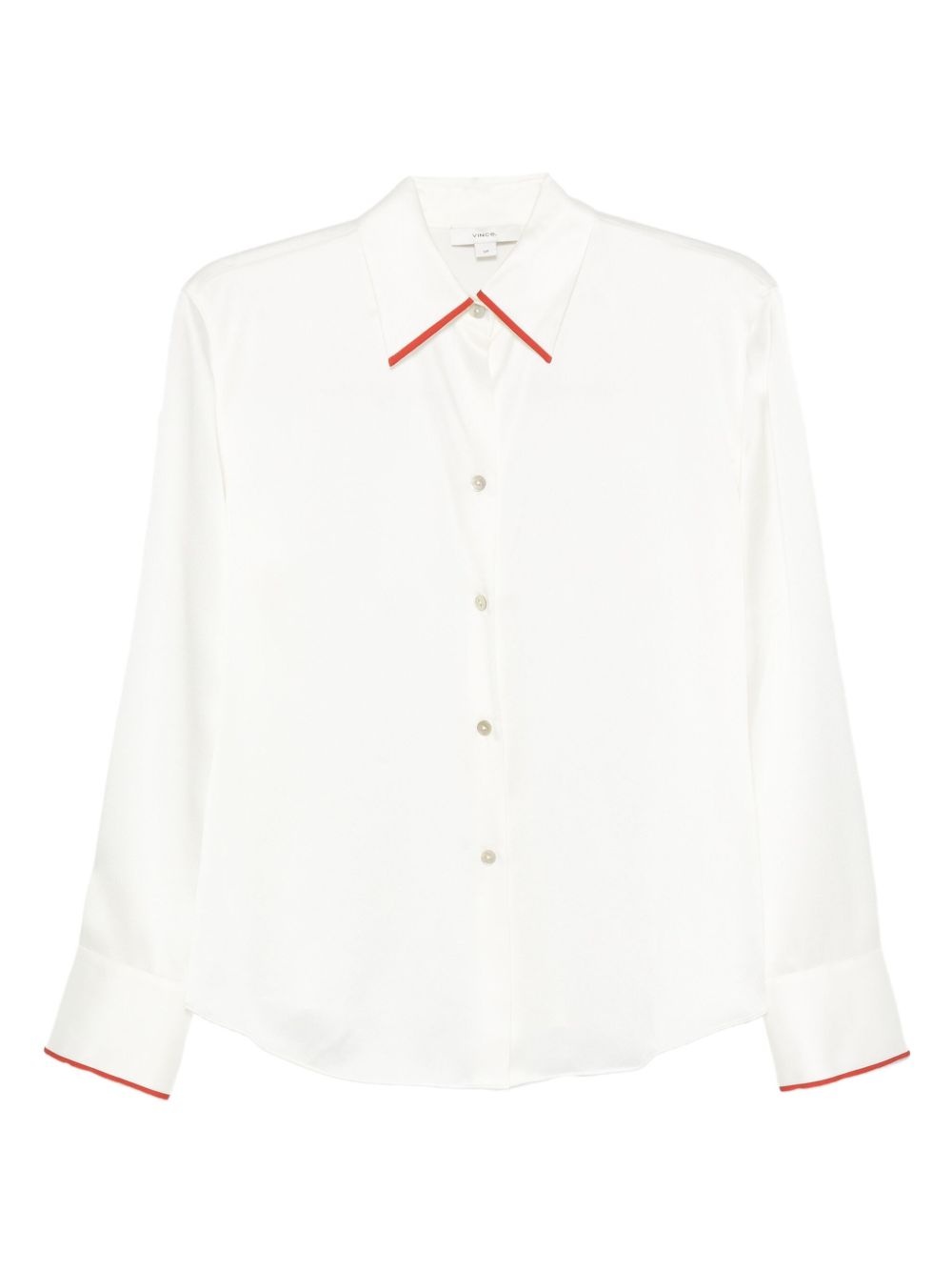 collar-detail silk shirt Highlights - White - Silk - Long sleeves - Button fastening - Red detail collar Imported Composition Silk 100% SIZE & FIT Model measurements Height 5 ft 10 in(1.78 m) Bust/Chest 33.85 in(86 cm) Hips 36.61 in(93 cm) Waist 26.77 in(68 cm) Washing instructions Hand Wash