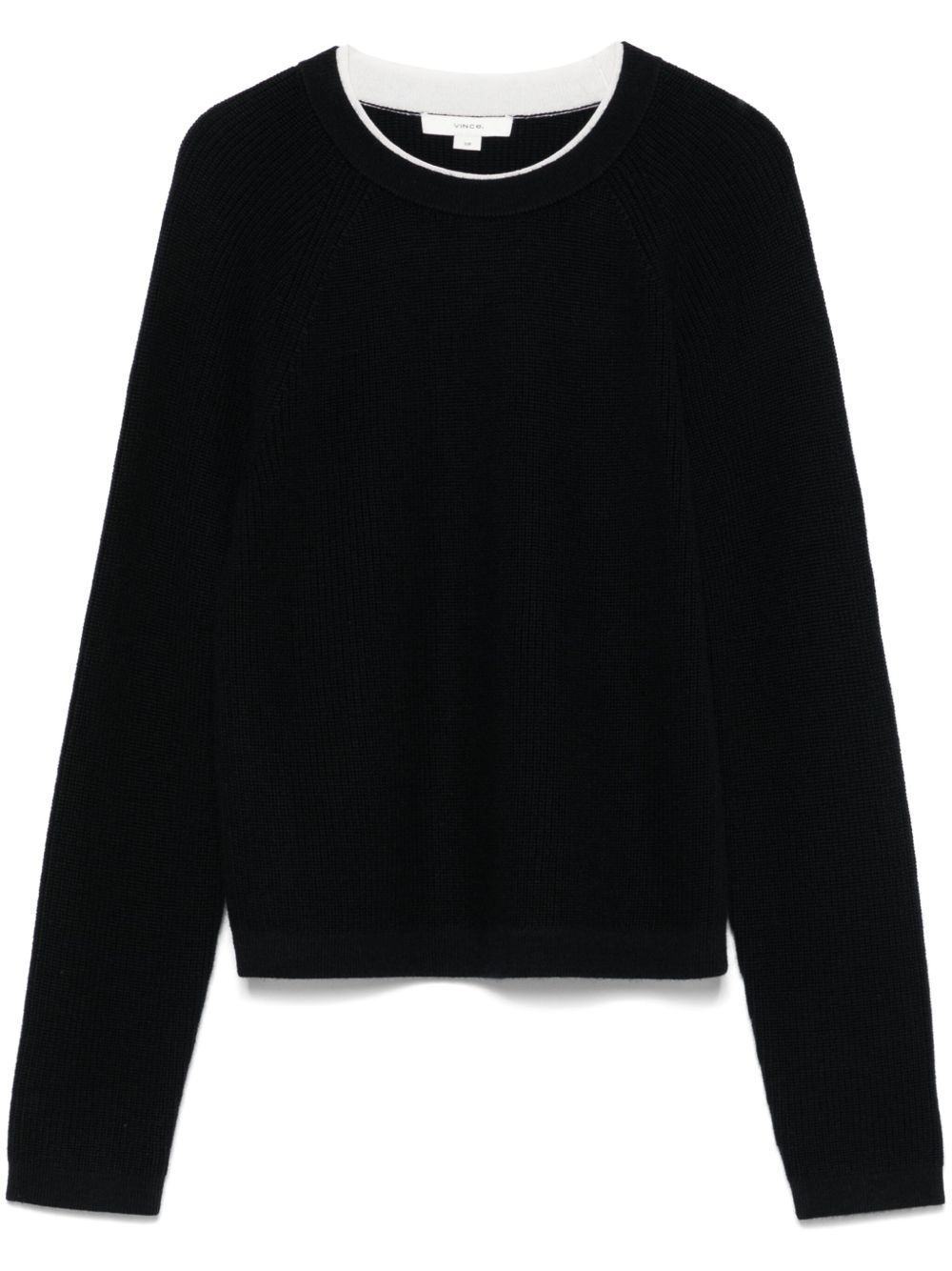 contrasting-trim sweater Highlights - Navy blue - Crew neck - Long raglan sleeves - Straight hem Imported Composition Cotton 64%, Nylon 32%, Spandex/Elastane 4% Washing instructions Hand Wash