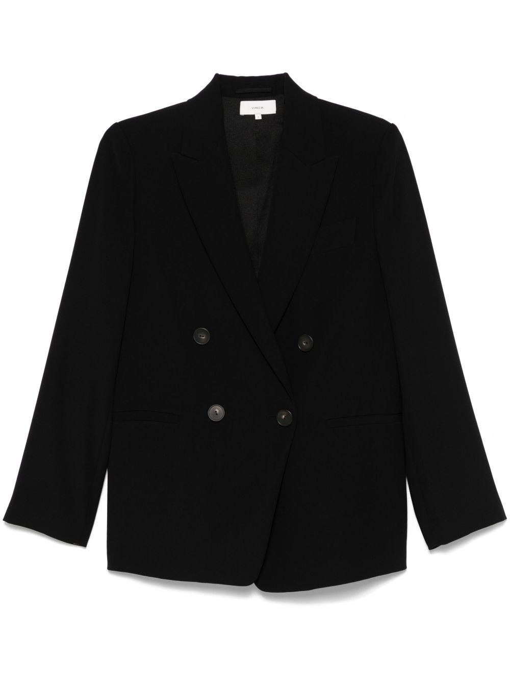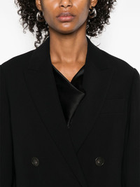 crepe double-breasted blazer Highlights - Black - Double-breasted button fastening - Internal jetted pocket - Chest welt pocket - Two side welt pockets Imported Composition Outer: Recycled Polyester 55%, Polyester 45% Lining: Polyester 100% Washing instructions Hand Wash