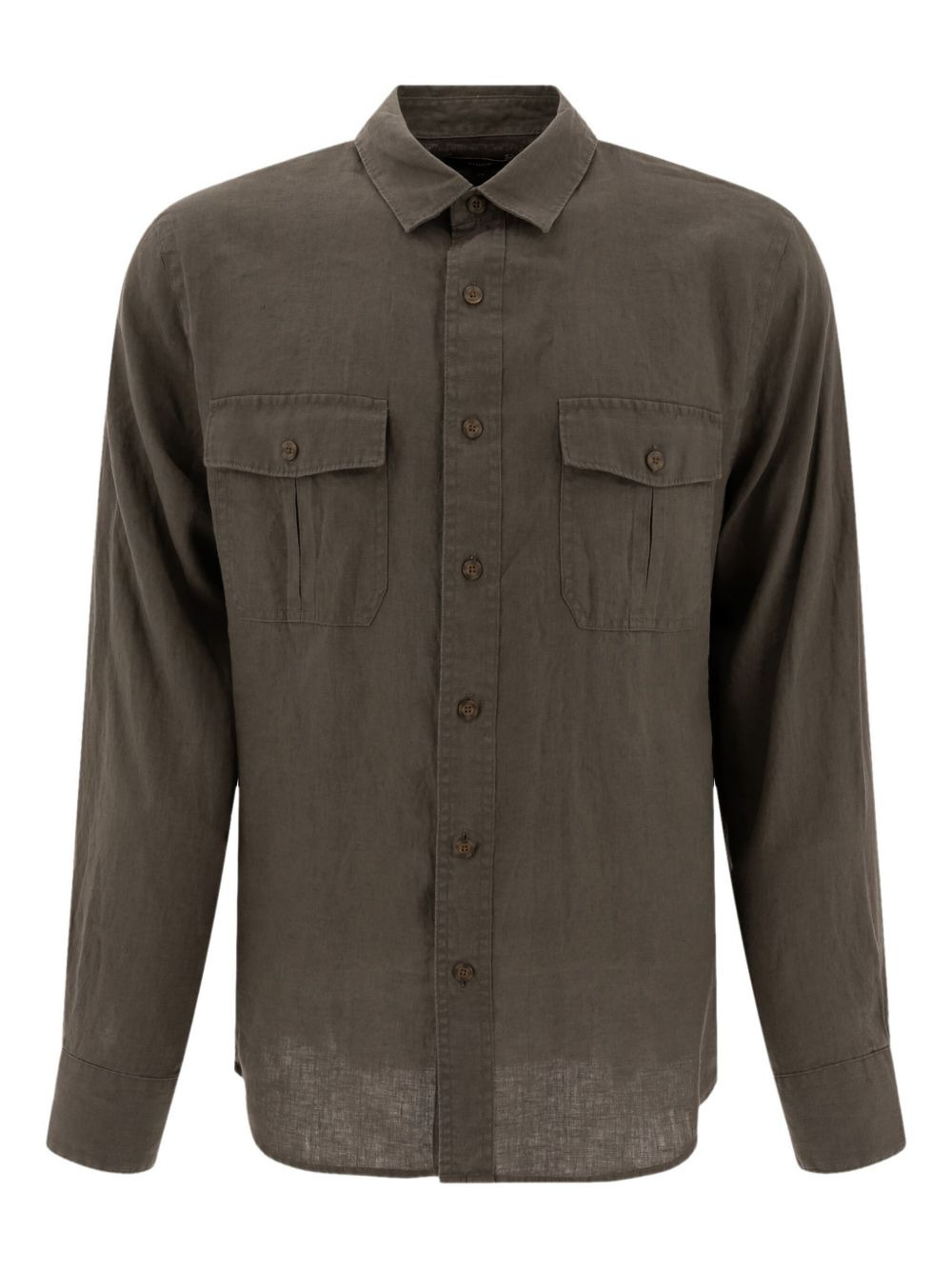 double-pocket linen shirt Highlights - Green - Linen fabric - Button fastening - Long sleeves - Flap pockets - Classic collar Imported Composition Linen/Flax 100% Washing instructions Read Manufacturer Guidelines