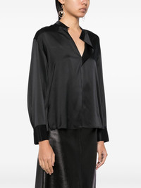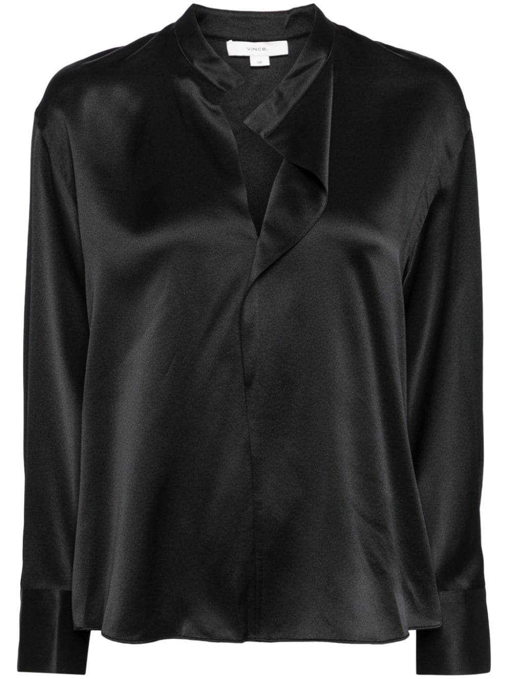 draped silk blouse Highlights - Black - Silk - Satin weave - Draped detailing - Stand-up collar - Split neck - Drop shoulder - Long sleeves - Buttoned cuffs - Short side slits - Box-pleat detail - Curved hem Imported Composition Silk 100% SIZE & FIT Model measurements Height 5 ft 10 in(1.77 m) Bust/Chest 31.49 in(80 cm) Hips 35.43 in(90 cm) Waist 25.19 in(64 cm) FittingInformation Designed for a relaxed fit, this piece allows for comfort and movement when worn Made from a lightweight non-stretch fabric