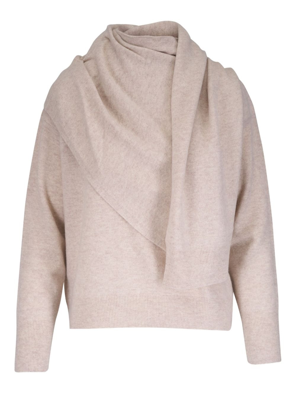 draped sweater Highlights - Light beige - Draped detailing - Long sleeves - Ribbed hem - Ribbed cuffs Made in United States Composition Wool 70%, Cashmere 30% Washing instructions Read Manufacturer Guidelines