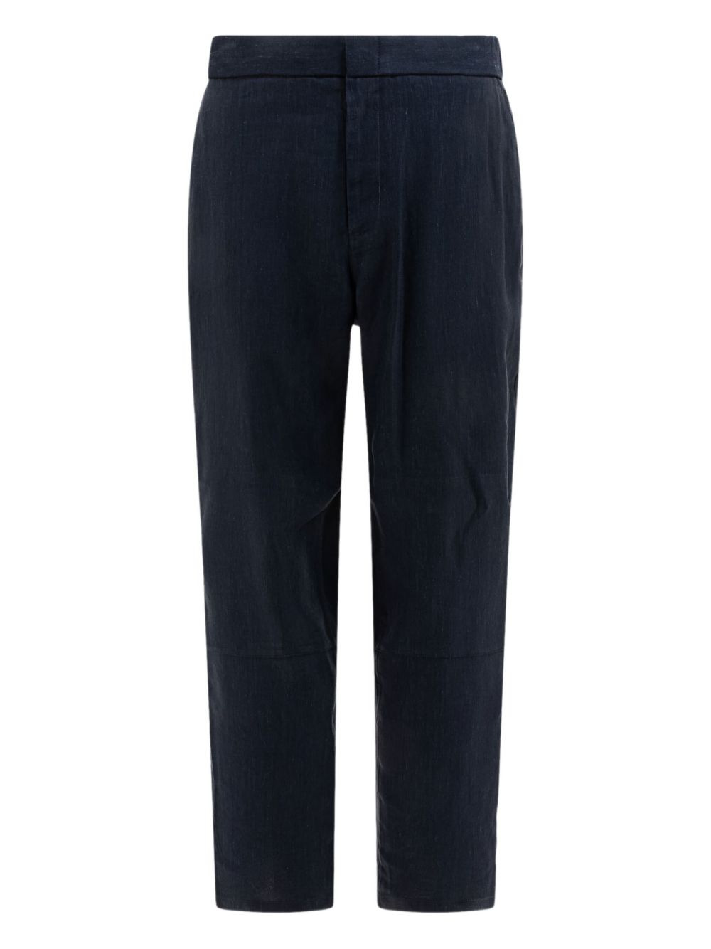 elasticated-waistband trousers Highlights - Dark blue - Elasticated back-waistband - Slash pockets - Back welt-pockets Imported Composition Viscose 64%, Eco Linen 34%, Elastane 2% Washing instructions Read Manufacturer Guidelines