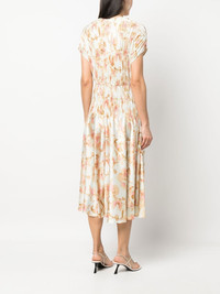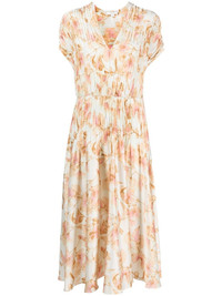 floral-print plisse dress beige/multicolour all-over floral print plisse effect V-neck cap sleeves belted waist below-knee length Imported Composition Polyester 100% SIZE & FIT Model measurements Height 5 ft 11 in(1.8 m) Bust/Chest 33.07 in(84 cm) Hips 37.4 in(95 cm) Waist 25.19 in(64 cm) FittingInformation This piece fits true to size. We recommend you get your regular size Cut for a loose fit Made with a mid-weight non-stretch fabric