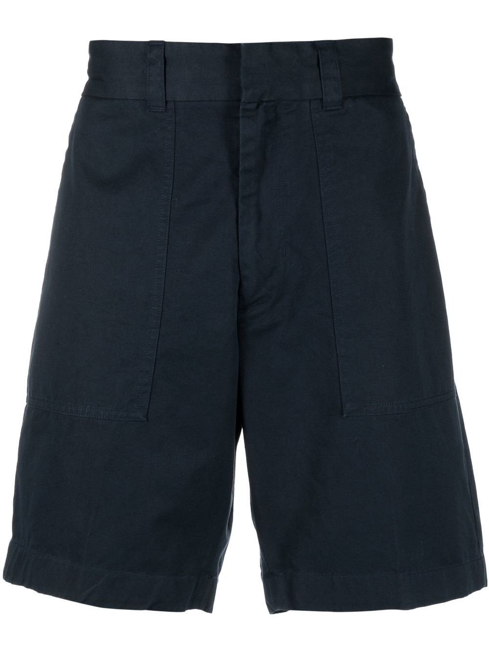 four-pocket tonal-stitching Bermuda shorts Highlights - Coastal blue - Cotton-lyocell blend - Tonal stitching - Concealed front fastening - Knee-length - Two side slit pockets - Two rear welt pockets Imported Composition Cotton 61%, Lyocell 39% SIZE & FIT Model measurements Height 6 ft 2 in(1.88 m) Bust/Chest 36.61 in(93 cm) Hips 35.82 in(91 cm) Waist 27.95 in(71 cm) FittingInformation This piece fits true to size. We recommend you get your regular size Designed for a slim fit at the waist and loose over the leg Made with a mid-weight non-stretch fabric