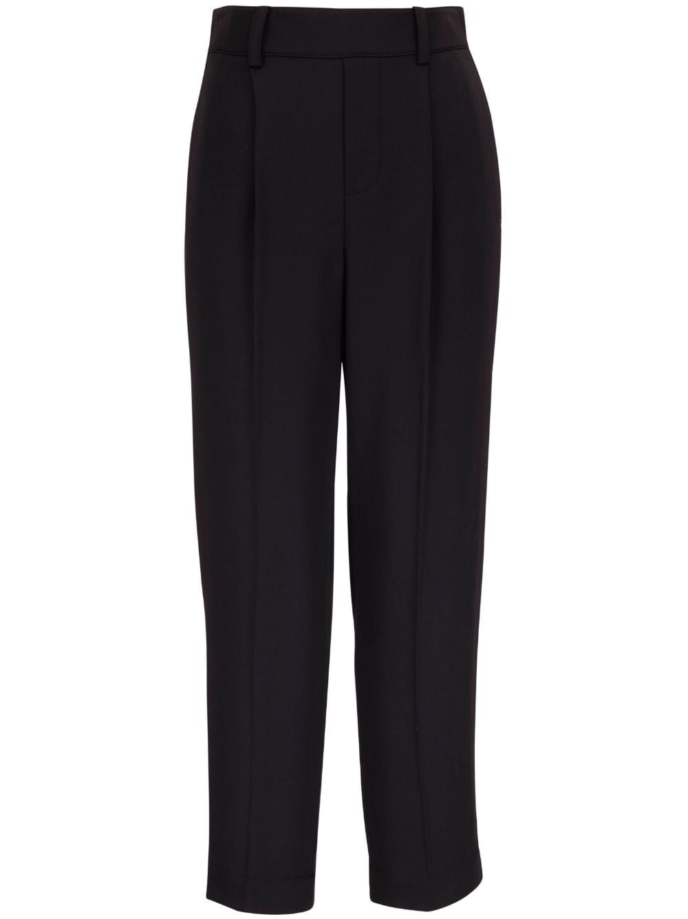 high-waist tapered-leg trousers Highlights - Black - Belt loops - Rear elasticated waistband - Concealed front fastening - Two rear jetted pockets - Tapered leg Made in United States Composition Polyester 100% Washing instructions Dry Clean Only