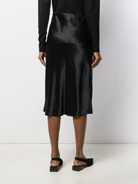 high-waisted midi skirt Black high-waisted midi skirt from Vince featuring a relaxed fit and a straight hem. Imported Composition Acetate 100% SIZE & FIT Model measurements Height 5 ft 11 in(1.8 m) Bust/Chest 31.49 in(80 cm) Hips 35.82 in(91 cm) Waist 24.8 in(63 cm) Measurement HIPS 37.79 in(96 cm) LENGTH 35.82 in(91 cm) WAIST 27.95 in(71 cm) FittingInformation This piece fits true to size. We recommend you get your regular size Cut for a slim fit Made with a mid-weight fabric Washing instructions Hand Wash