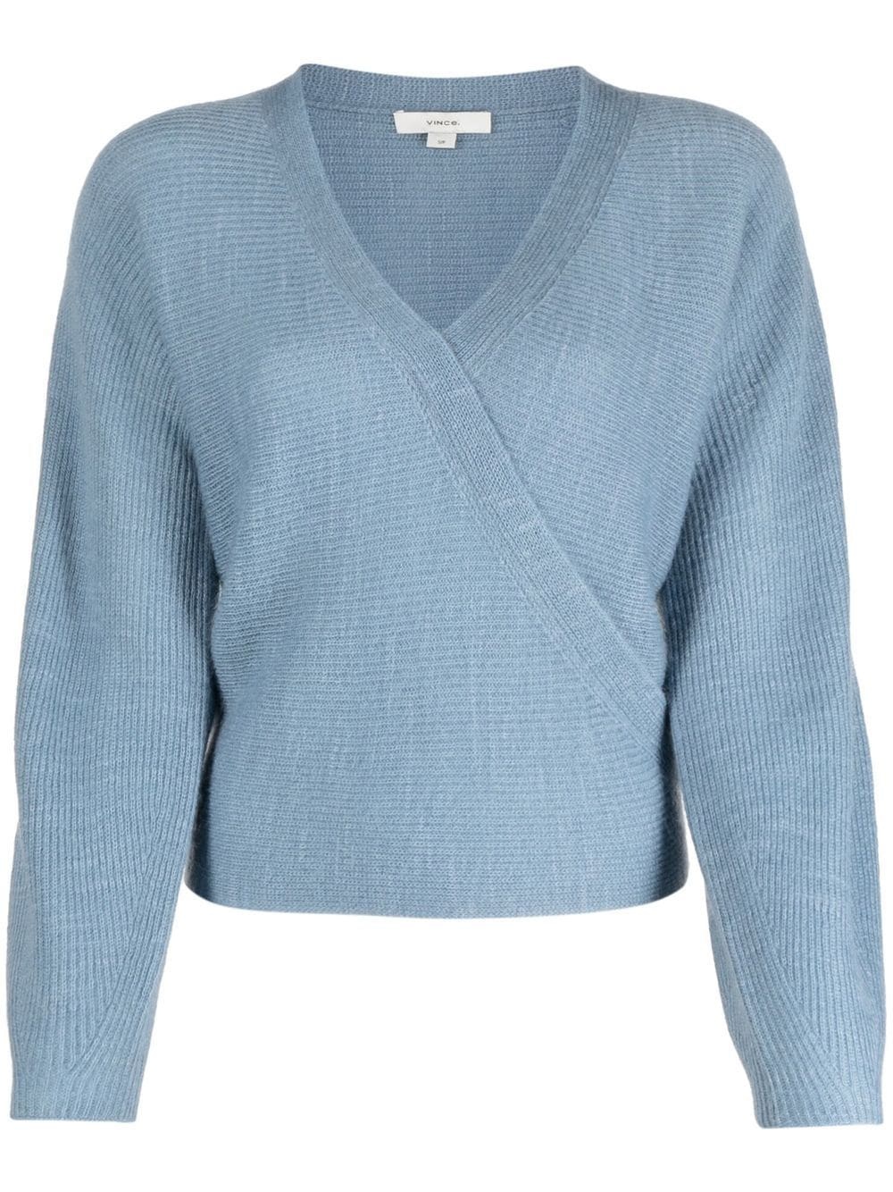 long-sleeve wrap jumper Vince's contemporary elegance is encapsulated in the way the brand imagines this jumper with a wrap design. Drop shoulders and a relaxed fit invite a casual and comfortable fit. Highlights - Blue - Wrap design - V-neck - Long sleeves Imported Composition Wool 43%, Polyamide 32%, Mohair 25% SIZE & FIT Model measurements Height 5 ft 11 in(1.8 m) Bust/Chest 31.49 in(80 cm) Hips 35.43 in(90 cm) Waist 25.19 in(64 cm) Washing instructions Hand Wash