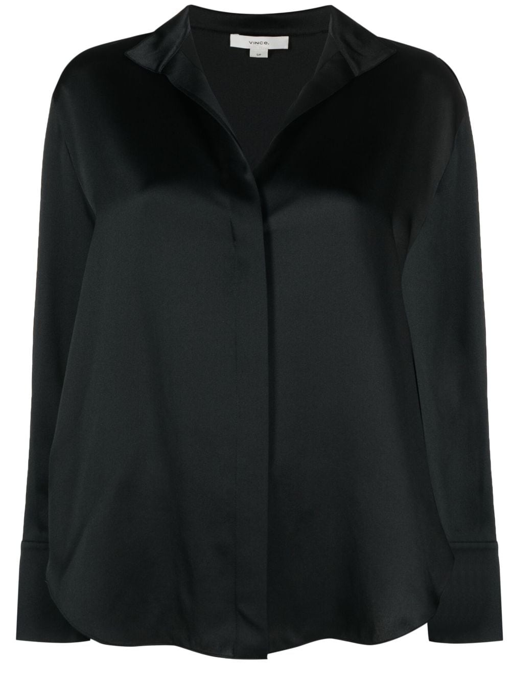long-sleeved silk shirt Highlights - Black - Silk - Satin finish - Cutaway collar - Concealed front button fastening - Long sleeves - Buttoned cuffs - Curved hem Imported Composition Silk 100% SIZE & FIT Model measurements Height 5 ft 10 in(1.78 m) Bust/Chest 33.46 in(85 cm) Hips 36.22 in(92 cm) Waist 23.22 in(59 cm) FittingInformation Designed to be unstructured, offering a loose fit throughout Made from a lightweight non-stretch fabric This piece fits true to size – take your usual size