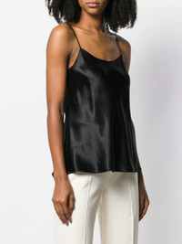 metallic vest Black metallic vest from Vince featuring spaghetti straps, a metallic sheen and a straight hem. Imported Composition Acetate 100% SIZE & FIT Model measurements Height 5 ft 11 in(1.8 m) Bust/Chest 31.49 in(80 cm) Hips 35.82 in(91 cm) Waist 24.8 in(63 cm) FittingInformation This piece fits true to size. We recommend you get your regular size Cut for a slim fit Made with a lightweight fabric Washing instructions Hand Wash