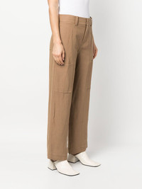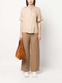 one tone-patch wide-leg trousers brown wide leg straight leg belt loops two rear patch pockets concealed fly and button fastening straight hem Made in Italy Composition Rayon 52%, Linen/Flax 48% SIZE & FIT Model measurements Height 5 ft 11 in(1.8 m) Bust/Chest 33.07 in(84 cm) Hips 37.4 in(95 cm) Waist 25.19 in(64 cm) FittingInformation This piece fits true to size. We recommend you get your regular size Designed to be fitted at the waist and hips, loose over the leg Made with a mid-weight non-stretch fabric Washing instructions Dry Clean Only