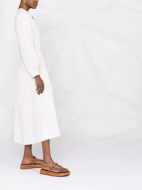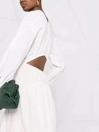 open-back detail dress white cotton open back V-neck long sleeves mid-length Imported Composition Lining: Polyester 100% Outer: Cotton 100% SIZE & FIT Model measurements Height 5 ft 11 in(1.8 m) Bust/Chest 31.49 in(80 cm) Hips 36.61 in(93 cm) Waist 24.4 in(62 cm) FittingInformation This piece fits true to size. We recommend you get your regular size Designed for a close fit at the bust and waist, but loose at the hip Made with a mid-weight non-stretch fabric Washing instructions Hand Wash