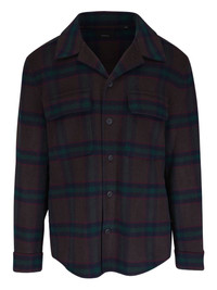 plaid flap-pocket shirt jacket Highlights - Brown - Plaid pattern - Button front - Two chest pockets - Long sleeves Made in United States Composition Wool 63%, Polyester 30%, Acrylic 3%, Nylon 3%, Viscose 1% Washing instructions Read Manufacturer Guidelines