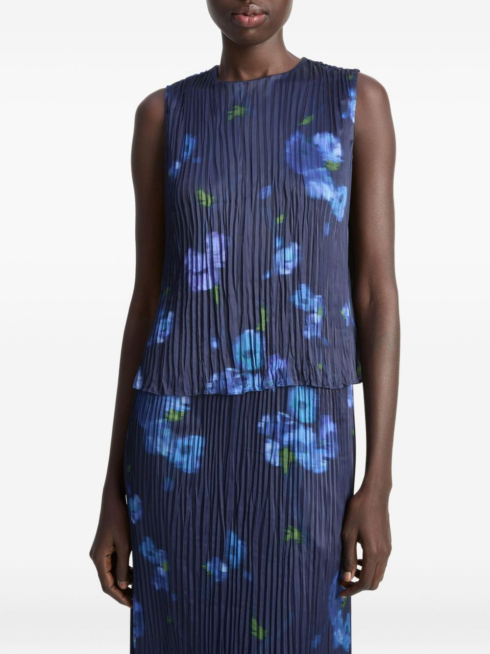 pleated floral-print top Highlights - Blue - Satin finish - Floral print - Pleated construction Imported Composition Polyester 100% Washing instructions Read Manufacturer Guidelines