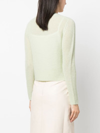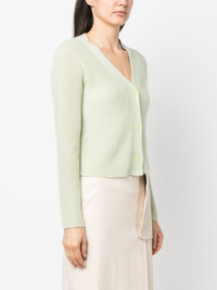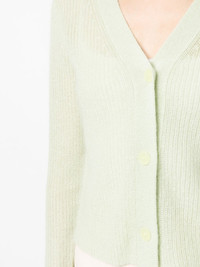 ribbed-knit V-neck cardigan light green mohair-wool blend ribbed knit V-neck front button fastening long sleeves Imported Composition Polyamide 47%, Mohair 37%, Wool 16% SIZE & FIT Model measurements Height 5 ft 11 in(1.8 m) Bust/Chest 33.07 in(84 cm) Hips 37.4 in(95 cm) Waist 25.19 in(64 cm) FittingInformation This piece fits true to size. We recommend you get your regular size Cut for a relaxed fit Made with a mid-weight fabric Washing instructions Hand Wash