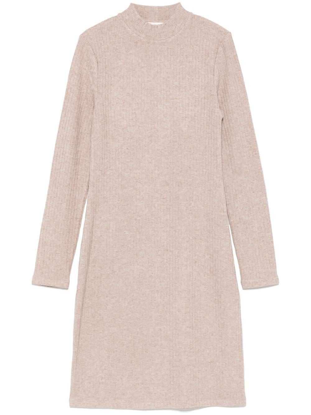 ribbed mini dress Highlights - Sand beige - Mock neck - Long sleeves Imported Composition Rayon 47%, Polyester 29%, Nylon 20%, Spandex/Elastane 4%