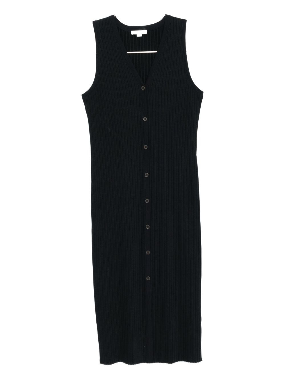ribbed V-neck dress Highlights - Dark blue - Front button fastening - Front slit - Sleeveless Imported Composition Cotton 46%, Viscose 30%, Polyester 22%, Spandex/Elastane 2% Washing instructions Machine Wash