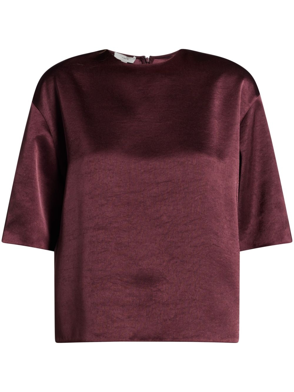 satin T-shirt Highlights - Burgundy - Concealed rear zip fastening - Crew neck - Short sleeves Imported Composition Polyester 55%, Recycled Polyester 45% Washing instructions Read Manufacturer Guidelines