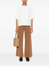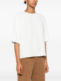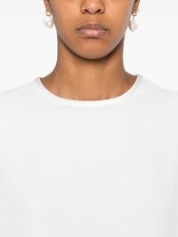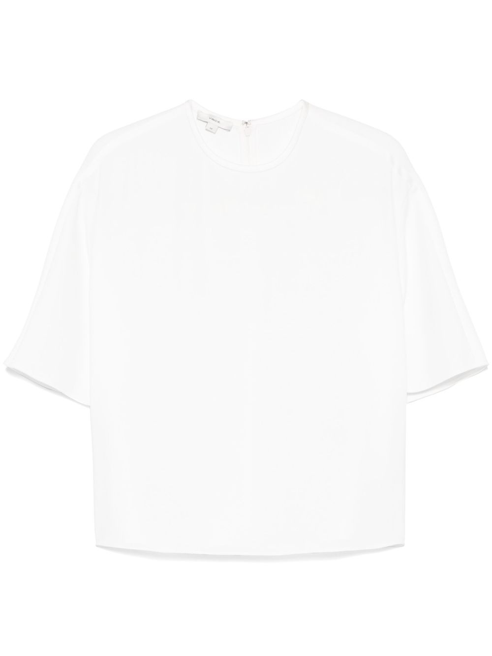 satin-trim crepe blouse Highlights - White - Concealed rear hook and zip fastening - Crew neck - Short sleeves Imported Composition Polyester 100% SIZE & FIT Model measurements Height 5 ft 10 in(1.77 m) Bust/Chest 33.07 in(84 cm) Hips 37 in(94 cm) Waist 24.8 in(63 cm) FittingInformation Designed to be unstructured, offering a loose fit throughout Made from a midweight non-stretch fabric, this piece offers minimal elasticity when worn