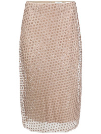 sequin-embellished double-layer straight skirt Highlights - Light beige - Sequin embellishment - Double layer - Rear zip fastening - Straight hem Imported Composition Polyester 100% SIZE & FIT Measurement HIPS 37 in(94 cm) LENGTH 29.52 in(75 cm) WAIST 29.92 in(76 cm) Washing instructions Dry Clean Only