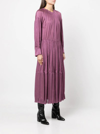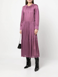 shirred-neck long-sleeved dress purple silk shirred effect round neck long sleeves long length Imported Composition Body: Silk 100% Lining: Polyester 100% SIZE & FIT Model measurements Height 5 ft 10 in(1.77 m) Bust/Chest 29.92 in(76 cm) Hips 35.03 in(89 cm) Waist 24.01 in(61 cm) FittingInformation This piece fits true to size. We recommend you get your regular size Designed for a loose fit with a close fit at the waist Made with a lightweight fabric Washing instructions Dry Clean Only