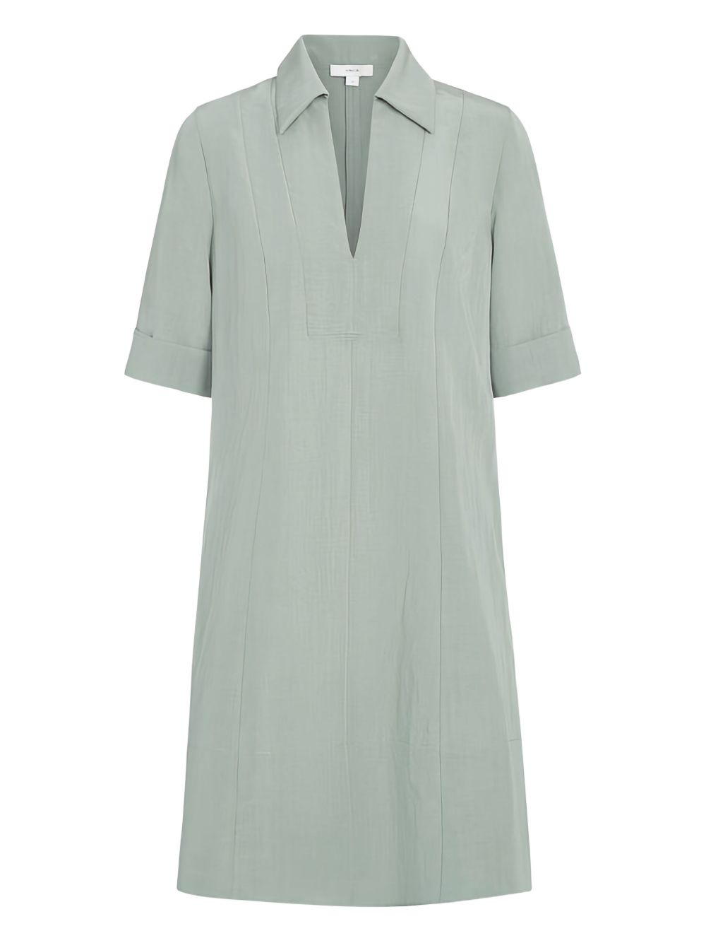 short-sleeve A-line dress Highlights - Sage green - V-neck - Short sleeves - A-line shape - Side pockets Imported Composition Outer: TENCEL™ Lyocell (LENZING) 84%, Nylon 9%, Wool 7% Washing instructions Read Manufacturer Guidelines