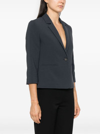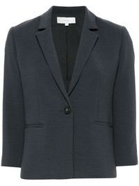 Shrunken blazer Highlights - Graphite grey - Front button fastening - Notched lapels - Shoulder pads - Three-quarter length sleeves - Buttoned cuffs - Dart detailing - Two side welt pockets - Full lining - Straight hem Imported Composition Outer: Polyester 63%, Viscose 30%, Elastane 7% Lining: Polyester 100% SIZE & FIT Model measurements Height 5 ft 11 in(1.8 m) Bust/Chest 33.07 in(84 cm) Hips 37.4 in(95 cm) Waist 25.19 in(64 cm) FittingInformation Designed for a slim fit that sits just away from the body offering a close yet comfortable fit The internal shoulder pads offer a structured shape Made from a midweight fabric Washing instructions Hand Wash
