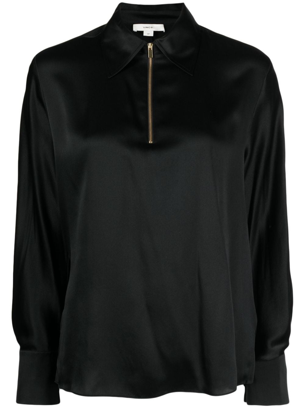 silk long-sleeve blouse Highlights - Black - Silk - Satin finish - Pointed flat collar - Short front zip fastening - Long sleeves - Straight hem Imported Composition Silk 100% SIZE & FIT Model measurements Height 5 ft 10 in(1.77 m) Bust/Chest 28.74 in(73 cm) Hips 35.82 in(91 cm) Waist 24.4 in(62 cm) FittingInformation Designed to be unstructured, offering a loose fit throughout Made from a lightweight non-stretch fabric This piece fits true to size – take your usual size Washing instructions Hand Wash
