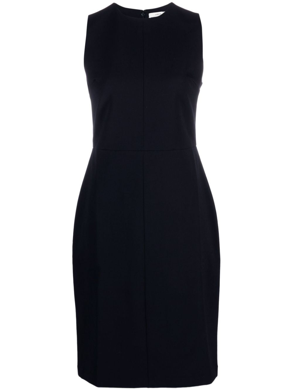 sleeveless knee-length dress Highlights - Black - Stretch-design - Crew neck - Sleeveless - Straight hem - Rear zip fastening - Knee-length Made in United States Composition Cotton 45%, Polyamide 45%, Elastane 10% SIZE & FIT Model measurements Height 5 ft 10 in(1.77 m) Bust/Chest 29.92 in(76 cm) Hips 34.25 in(87 cm) Waist 23.62 in(60 cm) FittingInformation Designed for a slim fit that sits just away from the body offering a close yet comfortable fit The dart stitching adds structure and a closer fit in the torso of this piece Made from a midweight stretch fabric, this piece offers elasticity and flexibility when worn This piece fits true to size – take your usual size Washing instructions Machine Wash