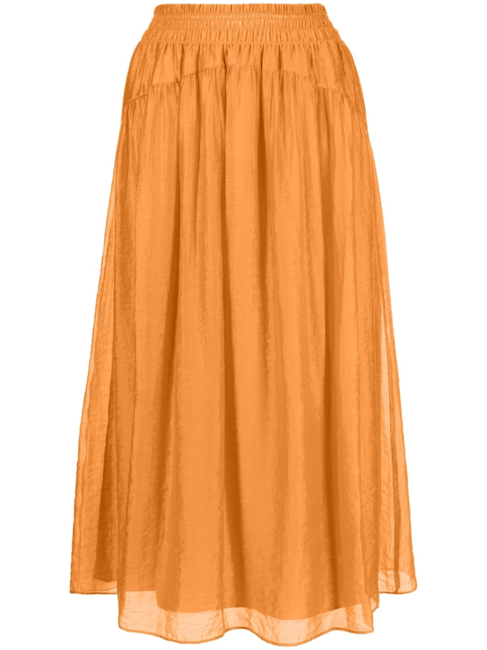 smocked-waist high-waisted skirt Highlights - Marigold orange - Tencel™ lyocell - Smocked waist - High-waisted - Elasticated waistband - Concealed rear zip fastening - Two side inset pockets - Flared hem Made in United States Composition TENCEL™ Lyocell (LENZING) 70%, Nylon 30% SIZE & FIT Model measurements Height 5 ft 11 in(1.8 m) Bust/Chest 28.34 in(72 cm) Hips 35.43 in(90 cm) Waist 23.62 in(60 cm) Measurement HIPS 40.15 in(102 cm) LENGTH 32.28 in(82 cm) WAIST 26.77 in(68 cm) FittingInformation This midi-length skirt is intended to be worn high on the waist The elasticated waist allows for a comfortable fit Made from a lightweight non-stretch fabric This piece fits true to size – take your usual size Washing instructions Machine Wash