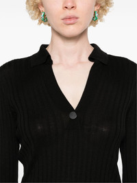 Snap polo sweater Highlights - Black - Wool-silk blend - Knitted construction - Polo collar - V-neck - Long sleeves - Faux front button fastening - Raw-cut hem Imported Composition Wool 71%, Silk 27%, Nylon 1%, Spandex/Elastane 1% SIZE & FIT Model measurements Height 5 ft 9 in(1.74 m) Bust/Chest 34.64 in(88 cm) Hips 36.61 in(93 cm) Waist 26.37 in(67 cm) FittingInformation Designed for a slim fit that sits just away from the body offering a close yet comfortable fit Made with a midweight knit, this piece offers some stretch This piece fits true to size – take your usual size