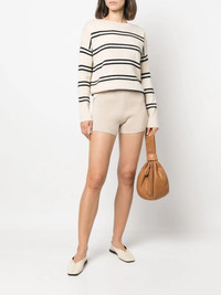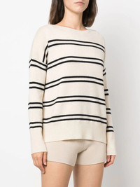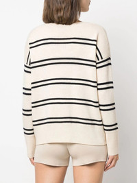 striped crew-neck jumper Highlights - White - Wool blend - Stripe print - Crew neck - Long sleeves Imported Composition Wool 70%, Cashmere 30% SIZE & FIT Model measurements Height 5 ft 10 in(1.77 m) Bust/Chest 35.03 in(89 cm) Hips 35.03 in(89 cm) Waist 23.62 in(60 cm) Measurement SLEEVE LENGTH 18.11 in(46 cm) Shoulder Width 25.98 in(66 cm) LENGTH 22.44 in(57 cm) BUST 50.39 in(128 cm) FittingInformation This piece fits true to size. We recommend you get your regular size Cut for a loose fit Made with a mid-weight fabric Washing instructions Hand Wash