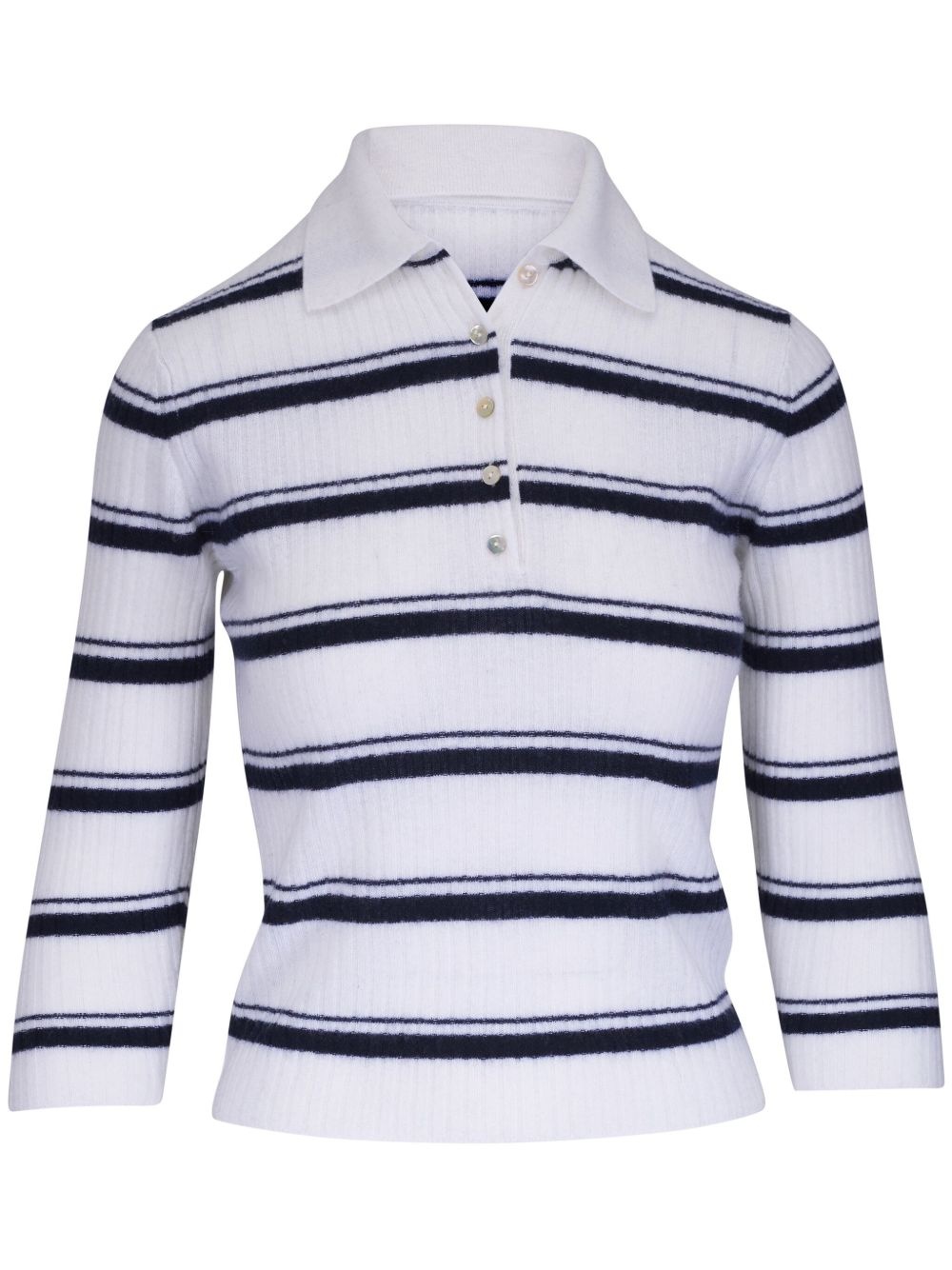 striped polo jumper Highlights - White - Front button placket - Polo collar - Long sleeves - Straight hem Imported Composition Cashmere 85%, Silk 13%, Nylon 2% Washing instructions Dry Clean Only