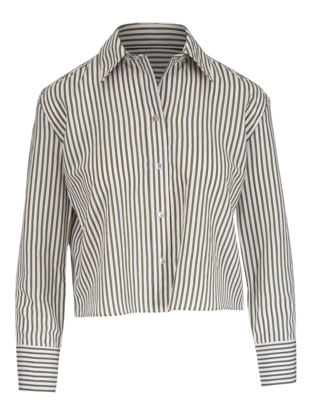 striped shirt Highlights - White - Front button fastening - Classic collar - Long sleeves - Straight hem Made in United States Composition Fabric 100%
