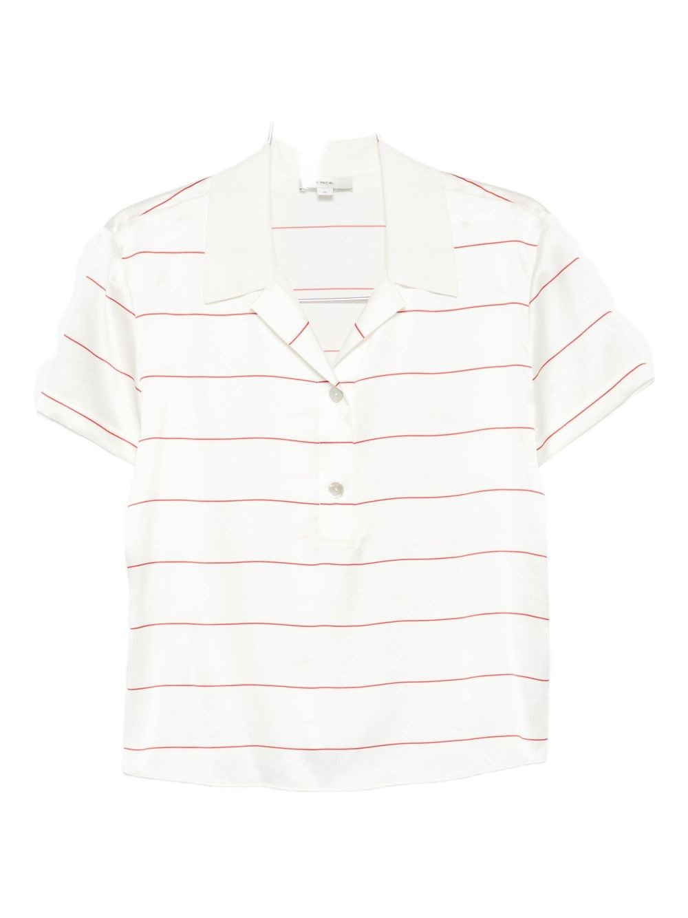 striped silk blouse Highlights - White - Red stripes - Short sleeves - Collared neck - Button fastening - Relaxed fit Imported Composition Silk 100% SIZE & FIT Model measurements Height 5 ft 10 in(1.78 m) Bust/Chest 33.85 in(86 cm) Hips 36.61 in(93 cm) Waist 26.77 in(68 cm) Washing instructions Hand Wash