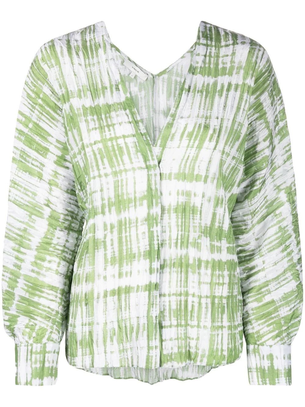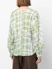 tie-dye long-sleeve silk blouse white/green silk tie-dye print V-neck long sleeves concealed front fastening Imported Composition Silk 100% SIZE & FIT Model measurements Height 5 ft 10 in(1.78 m) Bust/Chest 33.46 in(85 cm) Hips 36.22 in(92 cm) Waist 23.22 in(59 cm) FittingInformation This piece fits true to size. We recommend you get your regular size Cut for a loose fit Made with a lightweight non-stretch fabric Washing instructions Dry Clean Only