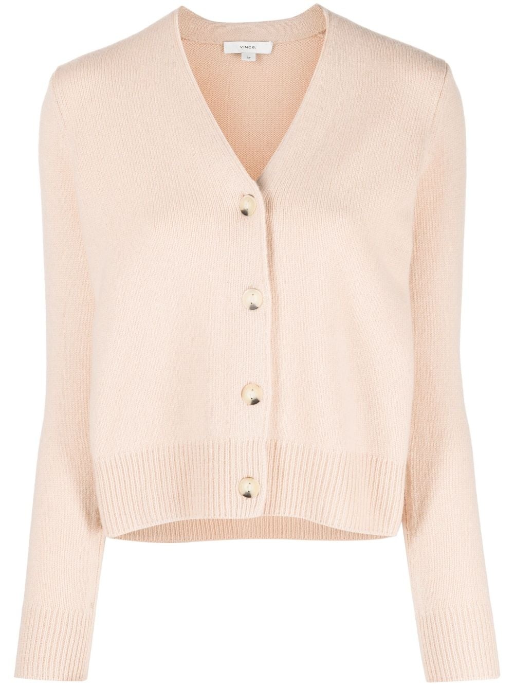 V-neck cashmere cardigan Highlights - Light beige - Cashmere - Knitted construction - V-neck - Front button fastening - Long sleeves - Ribbed cuffs and hem - Straight hem Imported Composition Cashmere 100% SIZE & FIT Model measurements Height 5 ft 9 in(1.75 m) Bust/Chest 33.07 in(84 cm) Hips 35.03 in(89 cm) Waist 24.01 in(61 cm) FittingInformation Designed for a relaxed fit, this piece allows for comfort and movement when worn Made with a midweight knit, this piece offers some stretch This piece fits true to size – take your usual size Measurement CHEST 32.28 in(82 cm) LENGTH 20.07 in(51 cm) SLEEVE LENGTH 21.65 in(55 cm)