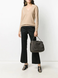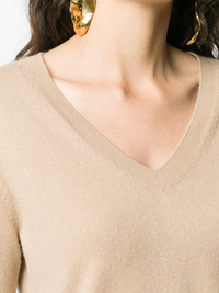 V-neck knitted jumper oatmeal-beige stretch-cashmere blend knitted construction ribbed detailing V-neck long sleeves Imported Composition Cashmere 94%, Nylon 4%, Spandex/Elastane 2% SIZE & FIT Model measurements Height 5 ft 10 in(1.79 m) Bust/Chest 33.07 in(84 cm) Hips 35.82 in(91 cm) Waist 24.01 in(61 cm) Washing instructions Hand Wash