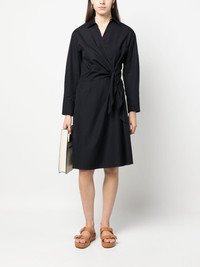 wraparound short dress Highlights - Navy blue - Cotton - Wraparound style - Classic collar - V-neck - Side tie fastening - Long sleeves - Buttoned cuffs - Straight hem - Knee-length Imported Composition Cotton 100% SIZE & FIT Model measurements Height 5 ft 11 in(1.8 m) Bust/Chest 31.49 in(80 cm) Hips 36.22 in(92 cm) Waist 25.59 in(65 cm) FittingInformation This piece fits true to size. We recommend you get your regular size Designed for a close fit at the bust and waist, but loose at the hip Made with a mid-weight non-stretch fabric Washing instructions Machine Wash