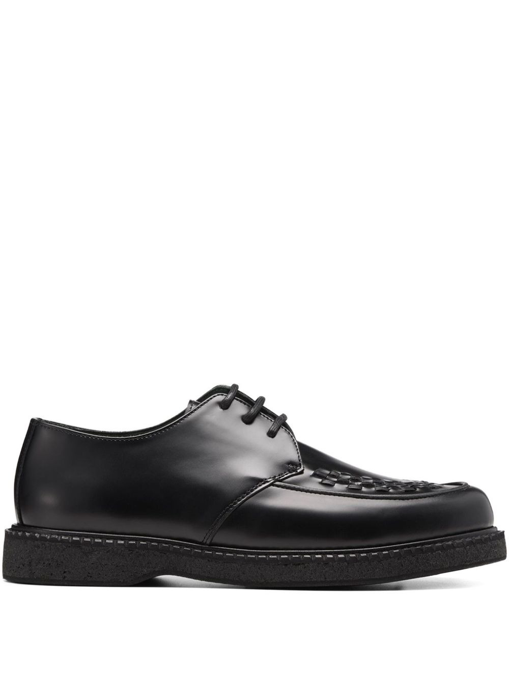 interwoven-detail lace-up derby shoes Highlights - Black - Leather - Lace-up fastening - Interwoven detail - Round toe Imported Composition Sole: Rubber 100% Outer: Calf Leather 100% Lining: Calf Leather 100%