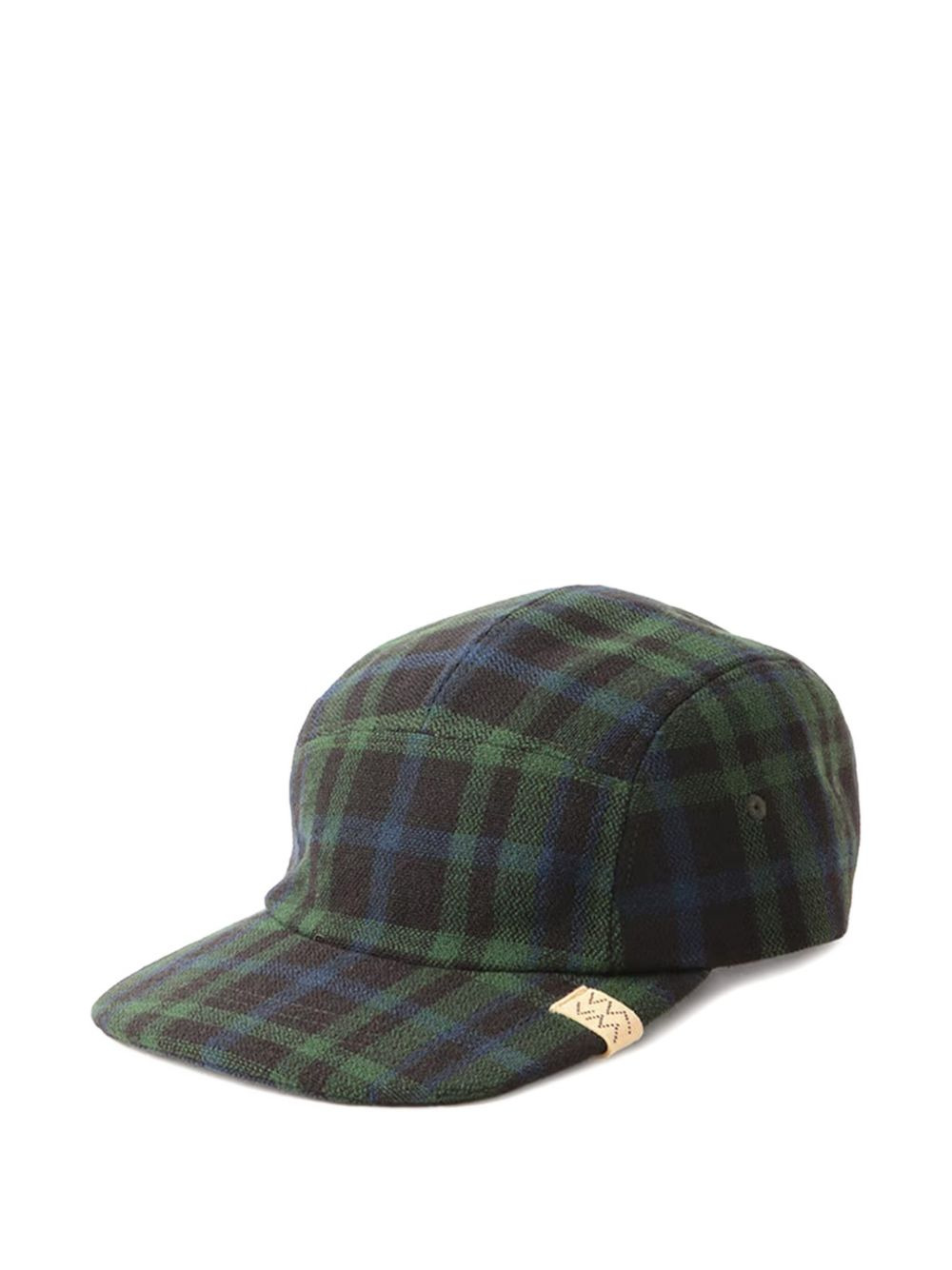 check-pattern adjustable cap Highlights - Green - Buffalo check pattern - Flat crown - Leather strap - Adjustable buckle - Five panels Imported Composition Calf Leather 100%, Wool 62%, Linen/Flax 38% SIZE & FIT Measurement BRIM 22.44 in(57 cm)