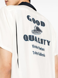 Hacking short-sleeve silk shirt Highlights - Ivory white/prussian blue - Silk - Embroidered motif - Embroidered slogan - Contrasting camp collar - Front button fastening - Short sleeves - Chest patch pocket - Straight hem Imported Composition Silk 100% SIZE & FIT Model measurements Height 6 ft 2 in(1.87 m) Bust/Chest 34.25 in(87 cm) Hips 36.22 in(92 cm) Waist 29.52 in(75 cm) FittingInformation Designed for a boxy fit, intended for a loose fit throughout Made from a lightweight non-stretch fabric This piece fits true to size – take your usual size Measurement CHEST 40.94 in(104 cm) SLEEVE LENGTH 16.14 in(41 cm) Shoulder Width 15.35 in(39 cm) Washing instructions Dry Clean Only