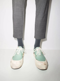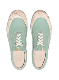 Logan Deck II sneakers Founded in Ura-Harajuku, Tokyo's streetwear hub, visvim seamlessly blends artisanship with versatile yet contemporary silhouettes. Crafted from leather and canvas, this aqua iteration of the Logan Deck II sneakers are designed for a distressed finish and sit atop an exaggerated flat rubber sole. Imported Composition Sole: Rubber 100% Outer: Cotton 100% Lining: Fabric 100% SIZE & FIT Model measurements Height 6 ft 1 in(1.86 m) Bust/Chest 31.88 in(81 cm) Hips 34.25 in(87 cm) Waist 28.34 in(72 cm) FittingInformation This piece fits true to size. We recommend you get your regular size Measurement HEEL 1.57 in(4 cm) Sole height 0.98 in(2.5 cm)